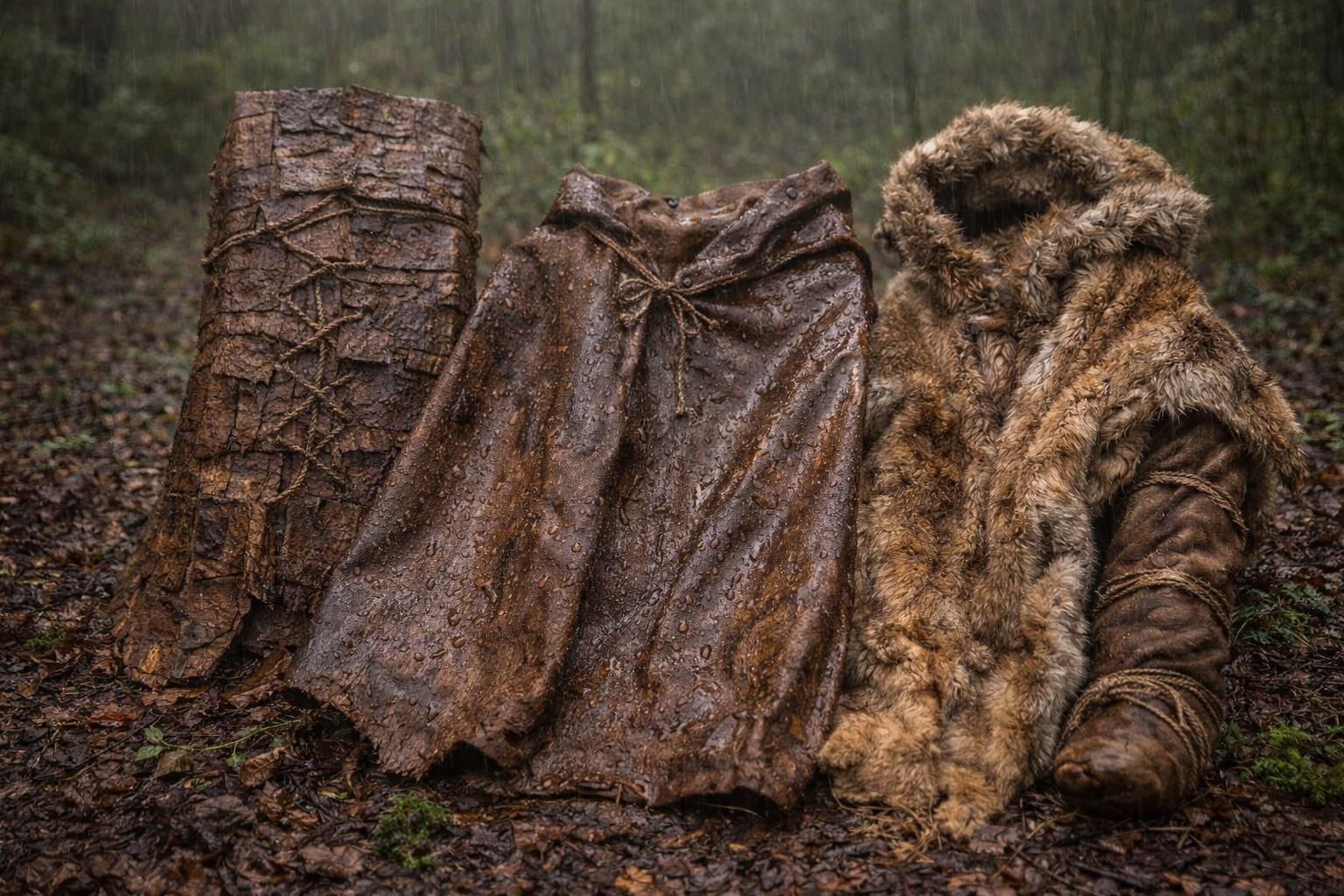 Modern waterproof clothing often traps moisture inside. Primitive solutions allowed water to escape and clothing to dry quickly.