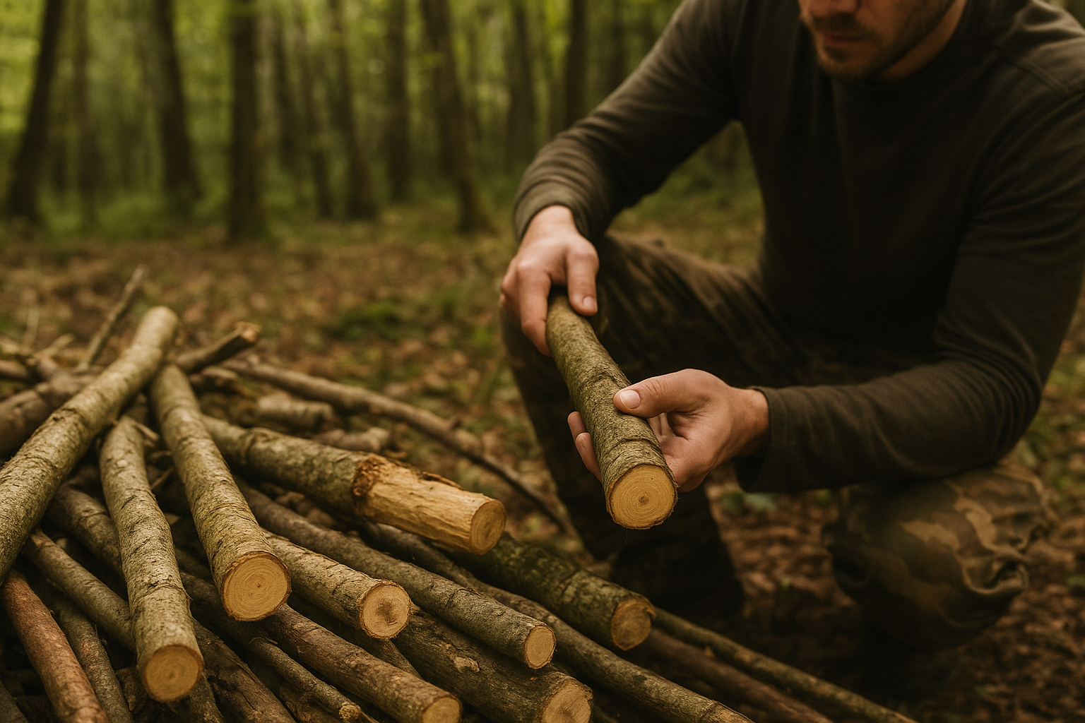 Bushcraft isn’t just building — it’s reading the forest like a craftsman.
